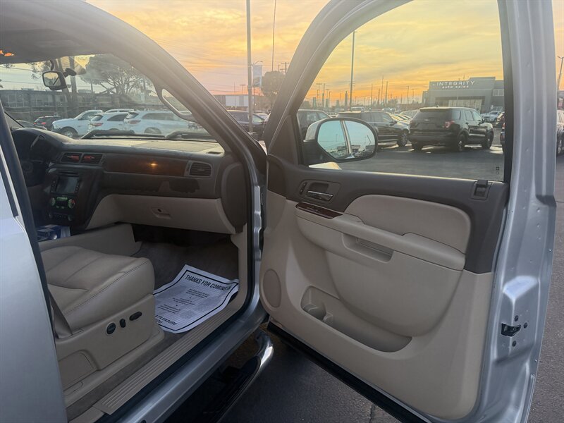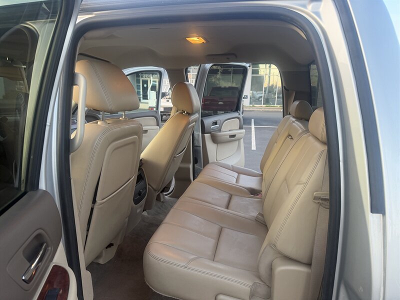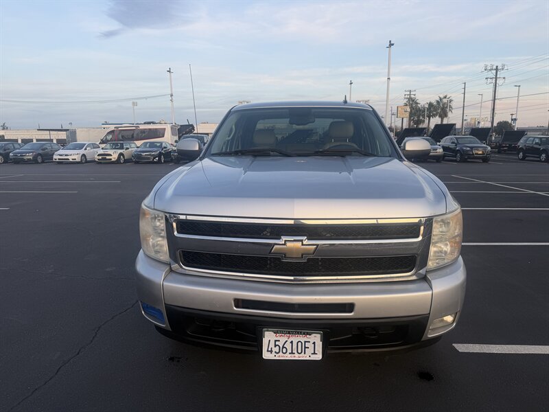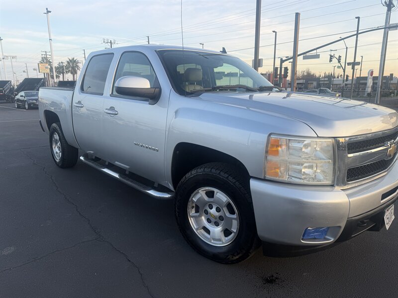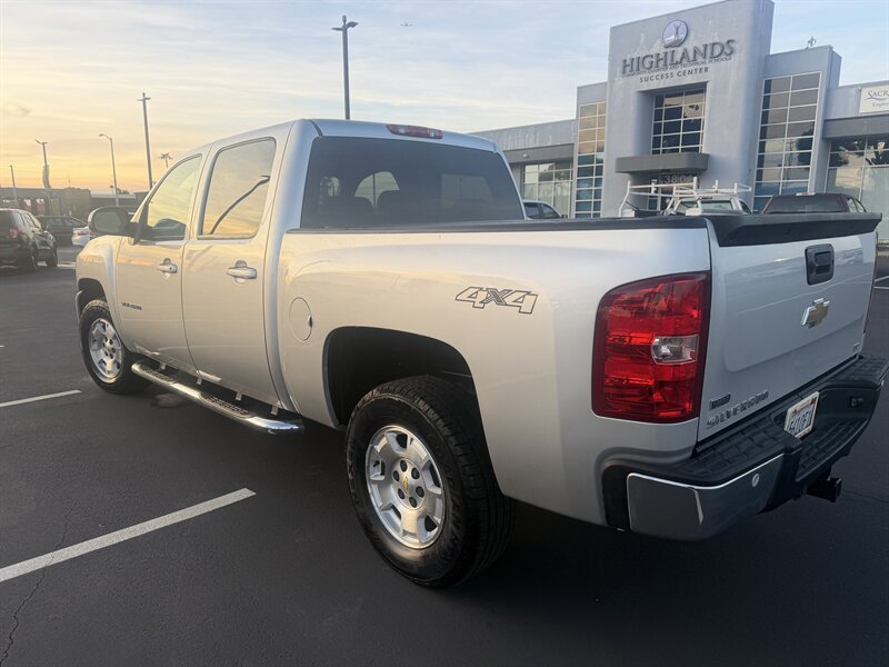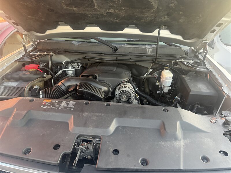 2011 Chevrolet Silverado 1500 LTZ in Sheer Silver Metallic with Light Titanium/Dark Titanium interior, powered by a Vortec 6.2L FlexFuel V8 producing 403 hp and 417 lb-ft of torque. Factory LTZ equipment includes premium leather seating with heated, power-adjustable front seats, dual-zone automatic climate control, leather-wrapped steering wheel with audio and cruise controls, power windows/locks/mirrors, remote keyless entry, OnStar and hands-free Bluetooth, AM/FM/CD audio with auxiliary input, chrome exterior trim and alloy wheels, fog lamps and running boards. This vehicle is in excellent overall condition.