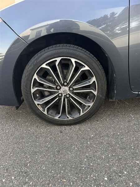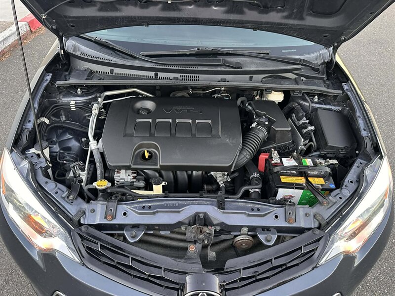 2015 Toyota Corolla S Plus in Classic Silver Metallic with a Black/Amber interior. Powered by a 1.8L I4 producing 132 hp and 128 lb-ft, with EPA ratings of 29 MPG city and 37 MPG highway. Factory equipment includes air conditioning, cruise control, power windows and door locks, remote keyless entry, steering-wheel audio and phone controls, AM/FM/CD audio with Bluetooth and auxiliary/USB inputs, sport cloth seating with a 60/40 split-folding rear seat, alloy wheels and a rear spoiler. Standard safety and convenience features include anti-lock brakes, traction control, vehicle stability control, multiple airbags and a tire pressure monitoring system. This vehicle is in excellent overall condition.