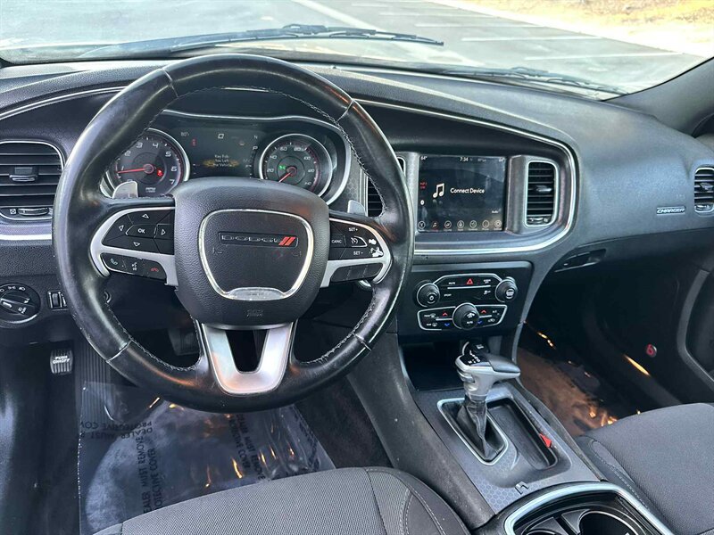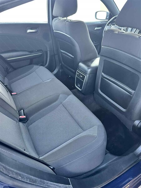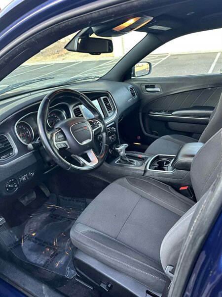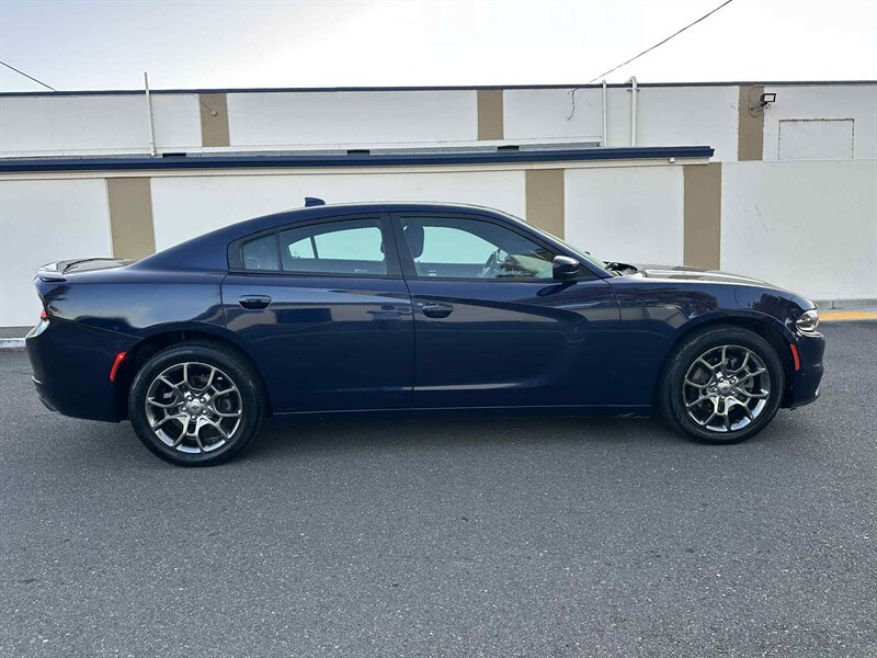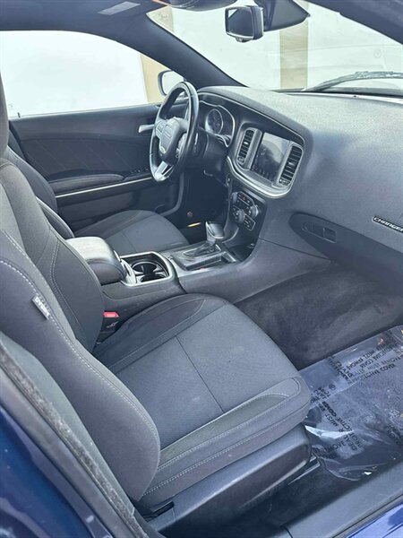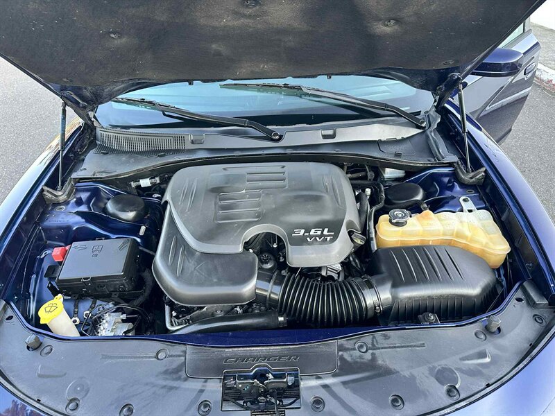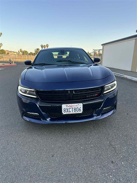 This 2017 Dodge Charger SXT comes with a powerful Pentastar 3.6L V6 engine delivering 292hp and 260ft. lbs. of torque. The factory default features include keyless entry, push-button start, dual-zone automatic climate control, a 7-inch touchscreen infotainment system with Apple CarPlay and Android Auto, Bluetooth connectivity, a rearview camera, and 17-inch alloy wheels. The Blue exterior and Black interior complement each other well. With a fuel efficiency of 18 MPG in the city and 27 MPG on the highway, this Charger SXT is in excellent overall condition.