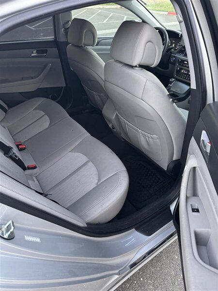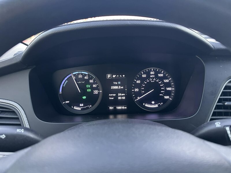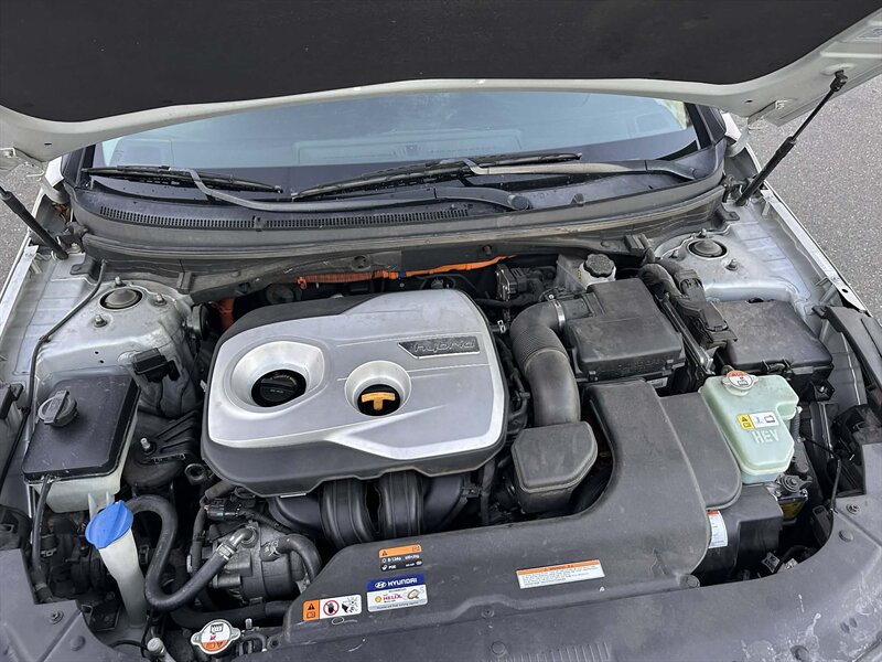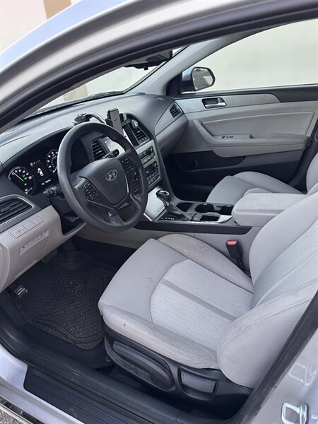 2017 Hyundai Sonata Hybrid SE in Ion Silver with Gray cloth interior, in excellent overall condition. It’s powered by a 2.0L Hybrid I4 (192 hp, 271 lb-ft) and delivers an EPA-rated 39 MPG city / 45 MPG highway. Factory equipment includes the hybrid powertrain with smooth automatic transmission, alloy wheels, projector headlights with LED daytime running lights, power windows/locks/mirrors, remote keyless entry, cruise control, tilt/telescoping steering wheel with audio and phone controls, Bluetooth hands-free and audio streaming, USB/AUX inputs and touchscreen infotainment, rearview camera, dual-zone automatic climate control, cloth seating, ABS with electronic stability and traction control, multiple airbags and tire-pressure monitoring.