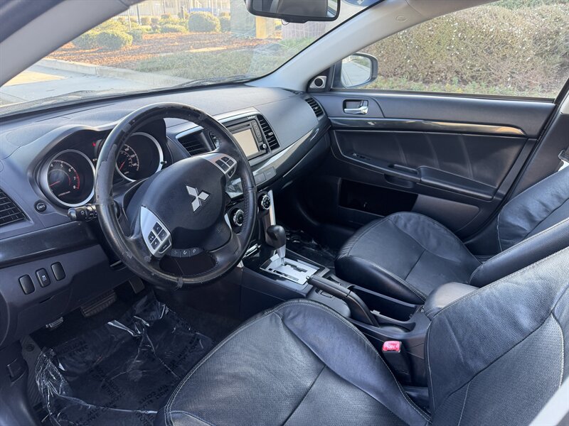 2017 Mitsubishi Lancer ES in Alloy Silver Metallic with a black interior — excellent overall condition. Powered by a 2.4L I4 producing 168 hp and 167 lb-ft, EPA-rated at 23 MPG city and 30 MPG highway, with front-wheel drive. Factory-standard equipment includes safety systems such as anti-lock brakes (ABS), electronic stability control and traction control, front and side-impact airbags with side curtain protection, and a tire pressure monitoring system; convenience and comfort features including manual air conditioning, power windows and door locks, remote keyless entry, cruise control, tilt-adjustable steering wheel, cloth seating and a 60/40 split-folding rear seat; and infotainment items like an AM/FM/CD/MP3 audio system with Bluetooth hands-free and audio streaming plus USB and auxiliary inputs and steering-wheel audio controls.