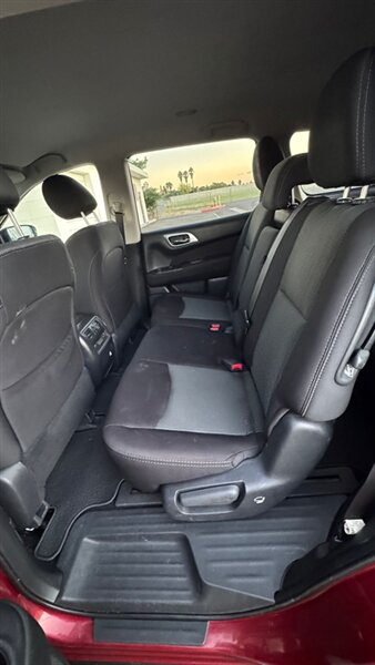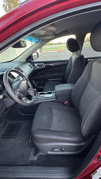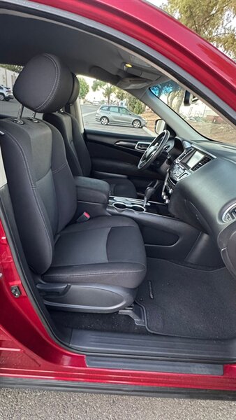 Introducing the 2017 Nissan Pathfinder SV, a versatile SUV designed for both comfort and performance. Powered by a robust 3.5L V6 engine, it delivers 284 horsepower and 259 lb-ft of torque, providing ample power for everyday driving and adventures alike. The striking Red exterior is complemented by a Charcoal interior, creating a modern and stylish look.